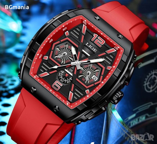 Мъжки часовник 89108с1 светещи стрелки червена силиконова каишка → Обява 45178959