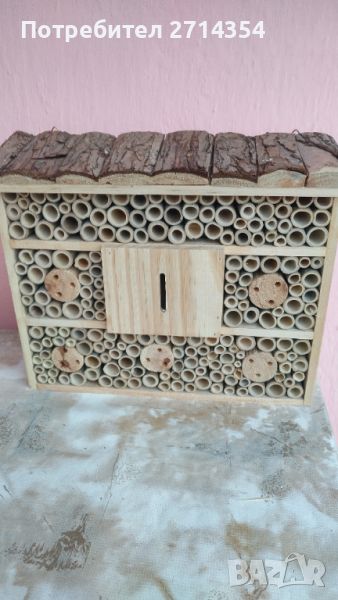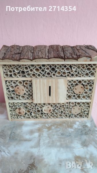 Къща за насекоми размер 27 на 32 на 8 см красив хотел за насекоми и декорация за градината, за повече информация пишете или се обадете на посочения телефон.