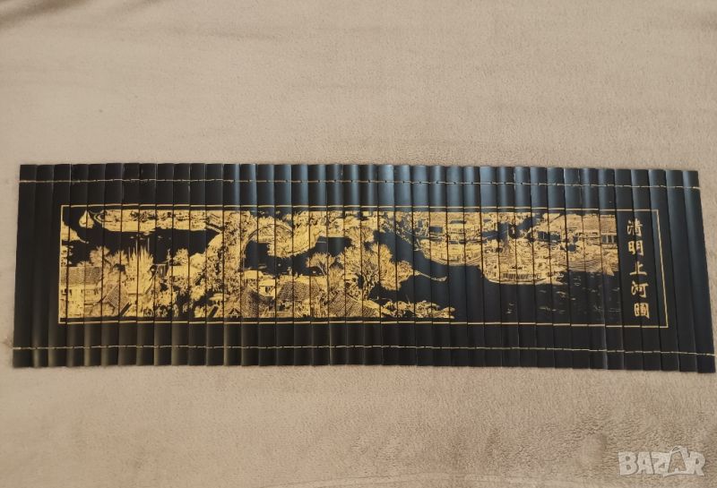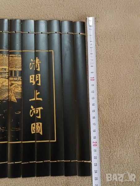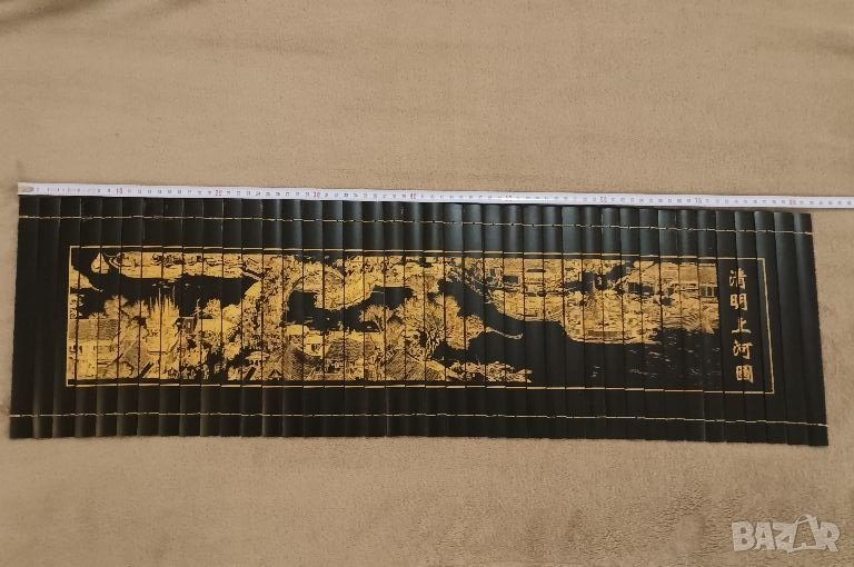 Стара ръчна дърворезба върху бамбук,картина,"Покрай реката по време на фестивала Qingming",Китай. → Обява 45180186