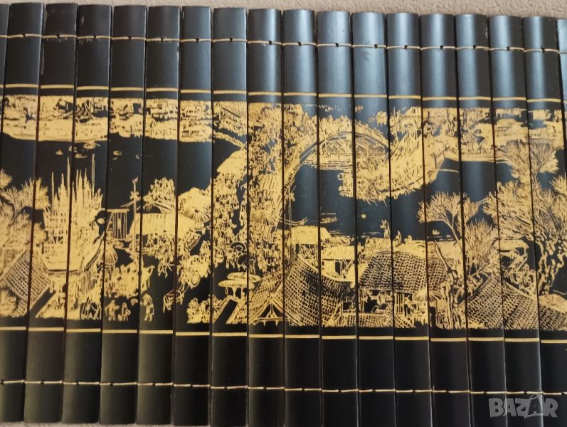 Стара ръчна изработка на финна дърворезба върху бамбук,"Покрай реката по време на фестивала Qingming",Китай. Много добре запазена.