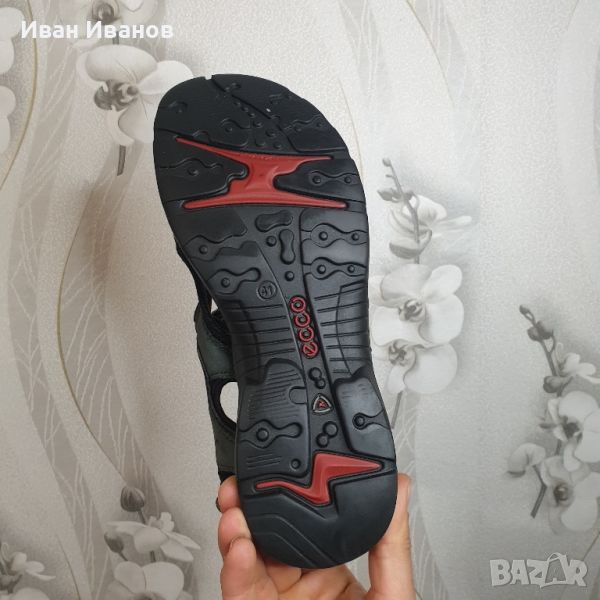Туристически сандали ECCO OFFROAD номер 41 малко използвани , без следи и забележкиКрасиви , леки и удобниЦена по магазините над 200 лева С тези сандали за открито от моделната серия Offroad се чувствате удобно и безопасно на всякакъв терен, благодарение на добре познатата технология RECEPTOR®. Неплъзгащата се гумена подметка е идеална за различни терени. Получавате оптимално прилягане и задържане благодарение на индивидуалните опции за регулиране на велкро закопчалките и 2-те странични ленти. Меката вътрешна подплата и микрофибърната повърхност на подложката осигуряват добро омекотяване и свеж климат при бягане.Мъжките сандали Ecco Offroad 82204412001са създадени за летния сезон. Благодарение на надеждния кожен материал, бързо ще се влюбите в обувките. Приятната мека стелка се адаптира към крака. Можете да регулирате обувките с помощта на три велкро ленти