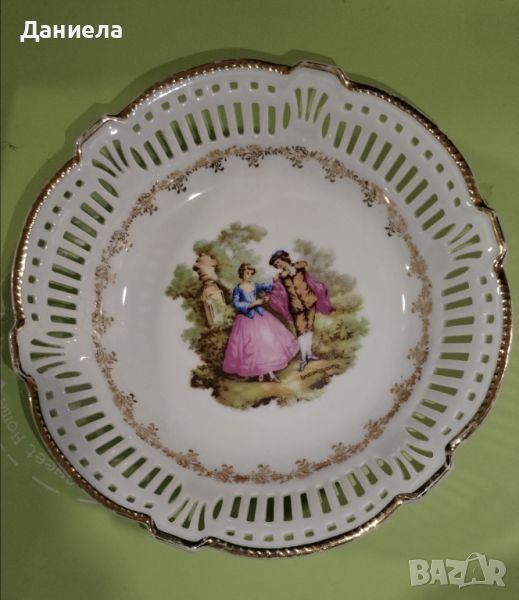 Порцелан тип рязана бродерия с Ромео и Жулиета. Богато изрисувани с допълнителна украса и много злато. Има възможност за окачване на стена.