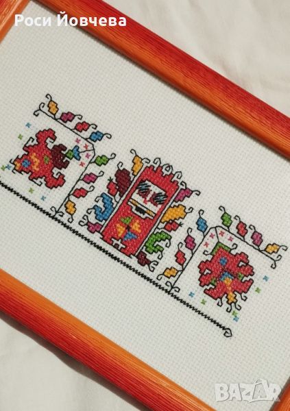 Българска бродерия в цветна оранжева премяна, 22/14 см. Наречен е за здраве, плодородие и благополучие. Пишете ми тук или във фейсбук на Роси Йовчева.