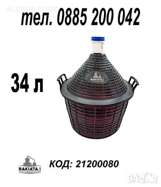 Дамаджана стъклена 34 литра с PVC оплетка - кош и дръжки PVC капачка, 21200080
