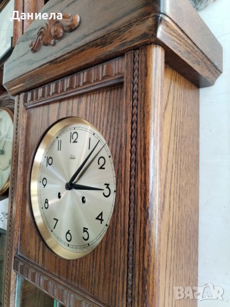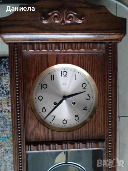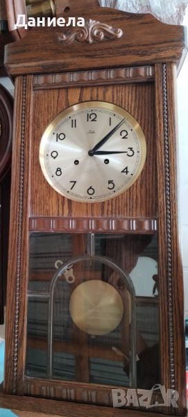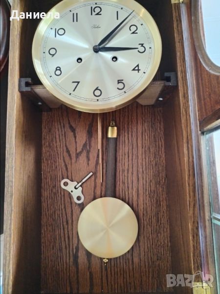 Голям стенен часовник в много добро състояние. Работи, има ключ.