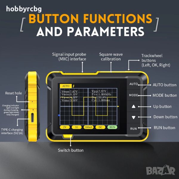 осцилоскоп FNIRSI DSO152 е изключително практичен и рентабилен ръчен осцилоскоп с честота на дискретизация в реално време от 2,5 MSa/s, честотна лента от 200 kHz и пълни тригерни функции (единични, нормални и автоматични).