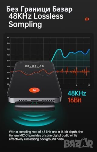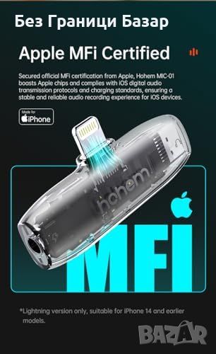 Съвместимост с iPhone/iPad: Микрофонът hohem MIC-01 е сертифициран за iOS и осигурява стабилно аудио записване.