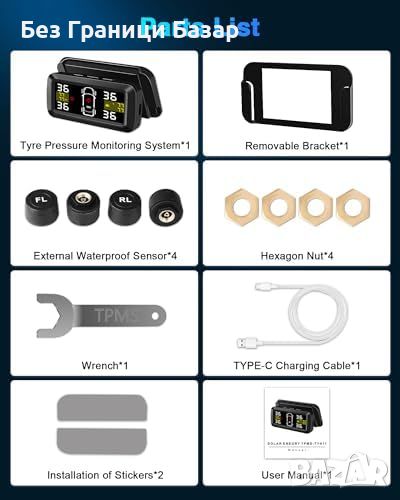 Нов Безжичен Монитор за Гуми с Външни Сензори и Различни Режими