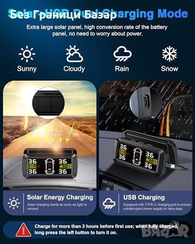 Соларно Зареждане и TYPE-C: Двойна опция за зареждане - слънчево и чрез TYPE-C.