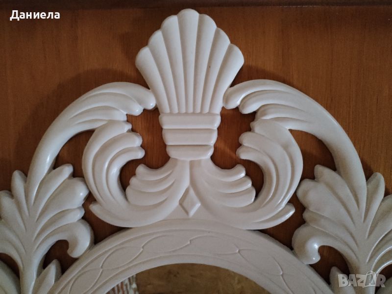 Голямо огледало елипса с бяла рамка с орнаменти тип рязана бродерия. Без забележки!