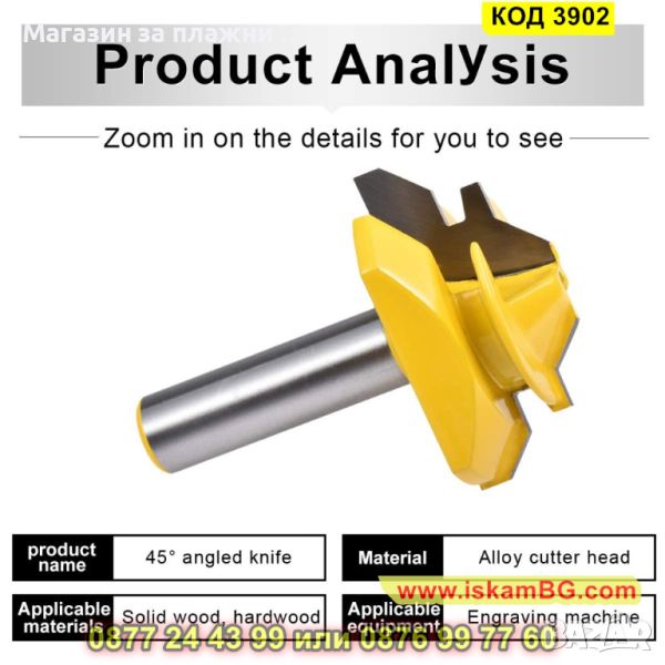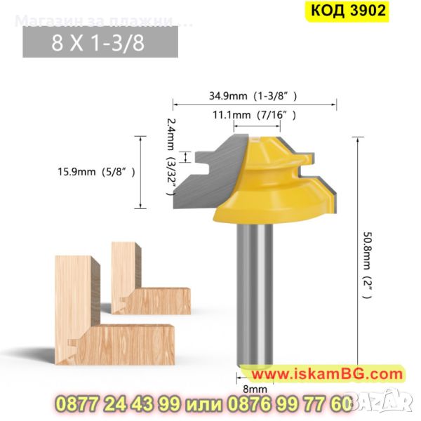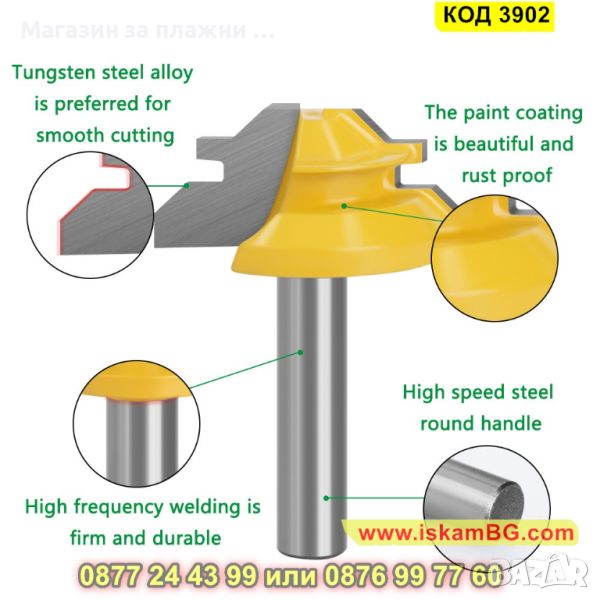 1 брой фреза за 45 градусова ъглова сглобка