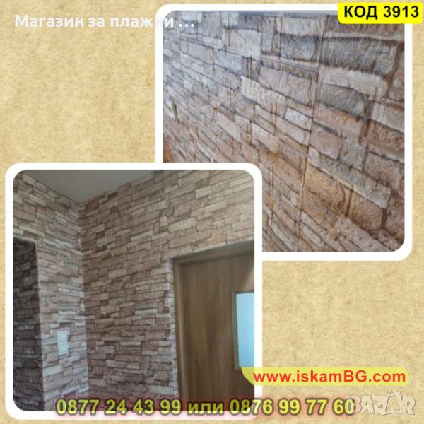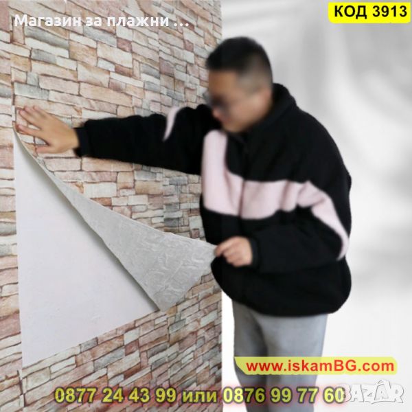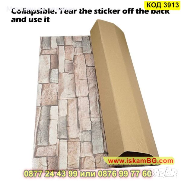 Самозалепващите се 3D тапети, които имитират естествен камък. Съставът им е от екологично чист материал, който има свойства да изолира от звук, температура и вода. Няма мирис, като същевременно с това е мек и гъвкав и издържа на атаки от вредни насекоми. Самозалепващият се тапет, имитиращ естествен камък, е продукт от полиетиленова пяна, която идеално звукоизолира и изолира вода и температура. Той е гъвкав, лек, устойчив на повреди, без мирис. Въпреки че е екологично чист материал , той не е податлив на гъбична активност и е устойчив на атаки от насекоми. Самозалепващият се 3D панел се справя отлично с всички несъвършенствата по стените Ви – вдлъбнатини, влага, остатъци от пробивания и други. Поставя се лесно - трябва да отлепите гърба на тапета и да залепите.
