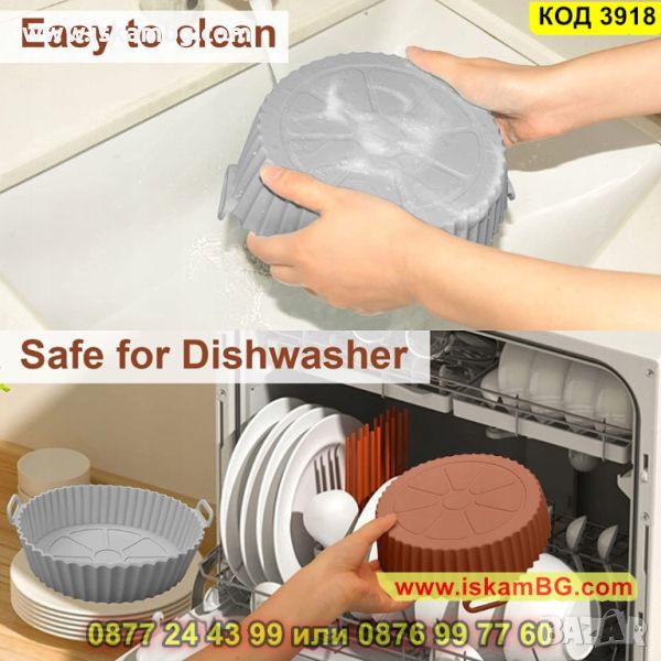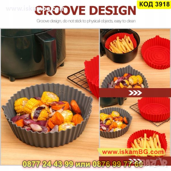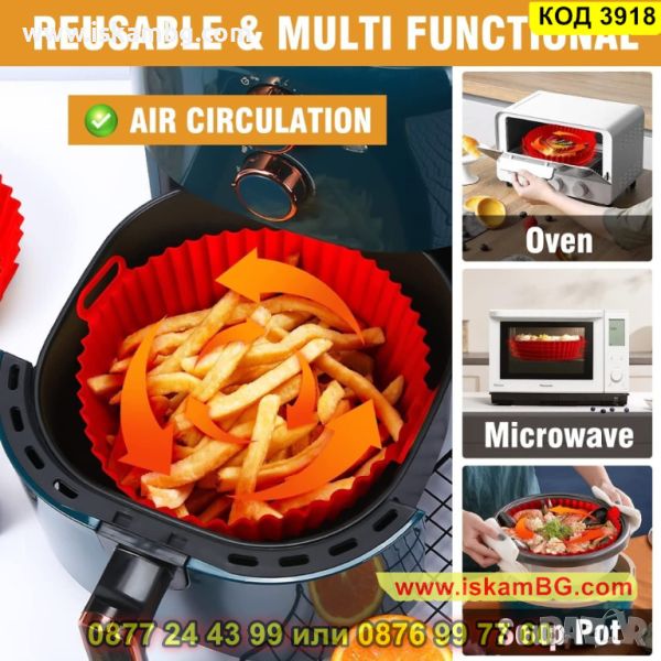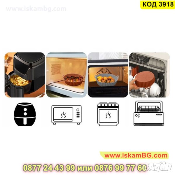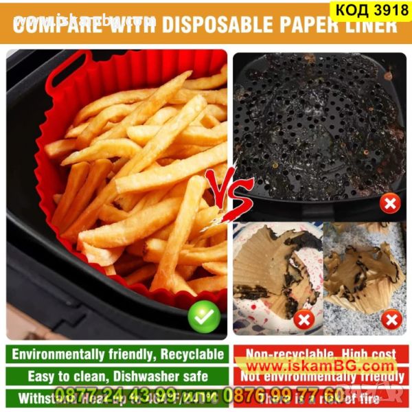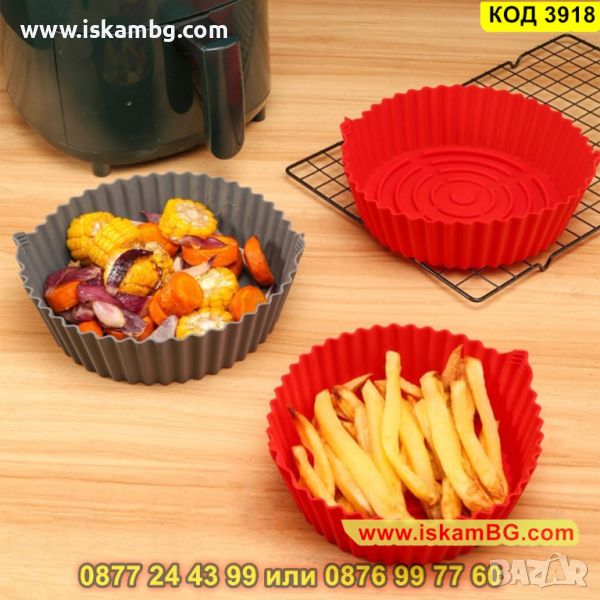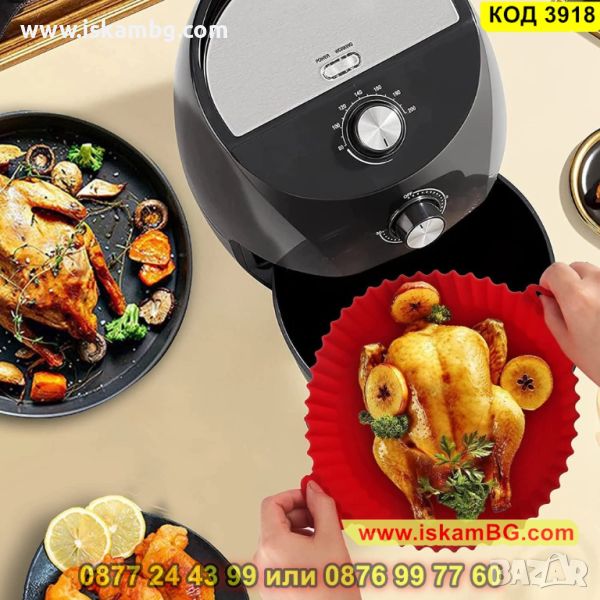 Силиконовите форми за еър фрайър са добра алтернатива на пергаментовата хартия, материалът е хранителен и безопасен. Може да приготви цяло пиле, пилешки хапки, пържени картофи и други ястия. След готвене не е необходимо да миете тавичката. Просто избършете силиконовата форма и сгответе следващото си любимо ястие.