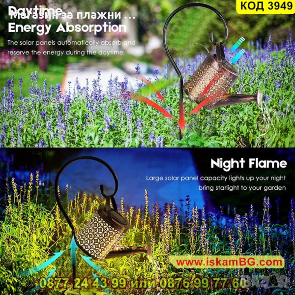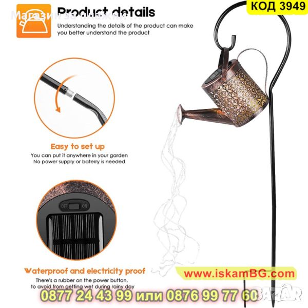 Водоустойчива Соларна лампа Лейка със стойка и 36 светлини - КОД 3949