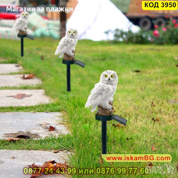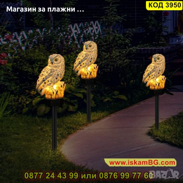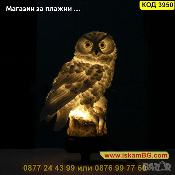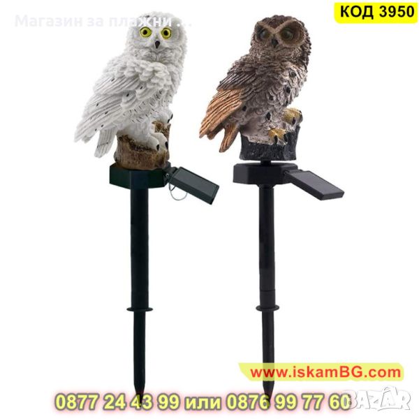 Соларна LED градинска лампа Сова с батерия, соларен панел и водоустойчив корпус - КОД 3950