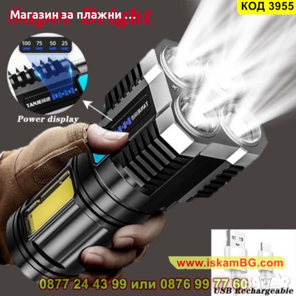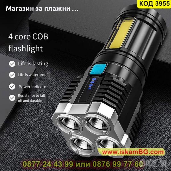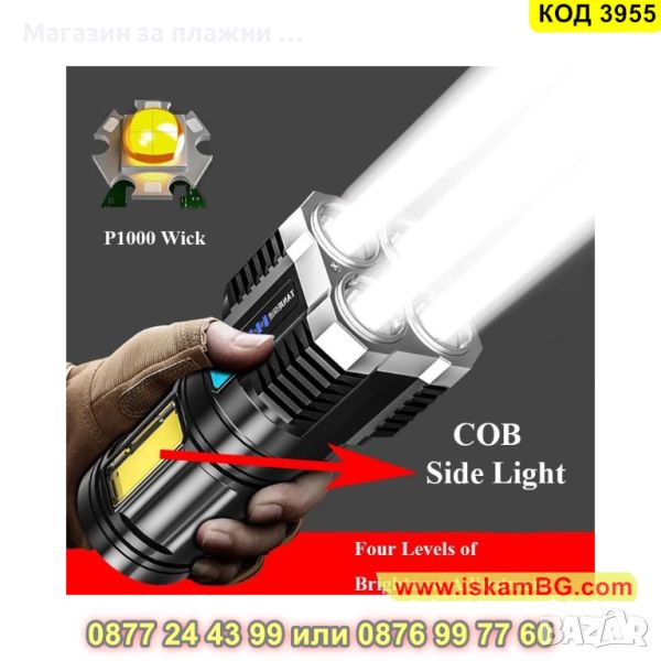 LED Фенер с 4 диода, 2500 lm лумена, мощност 15W и обхват 1000 метра - КОД 3955