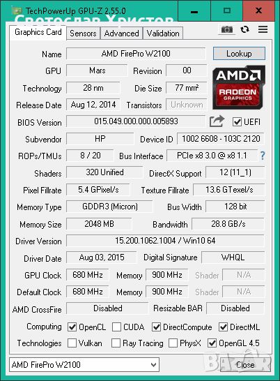 Продавам професионална видео карта AMD FIrePro W2100 2GB DDR3 128bit 2xDP LP, снимка 1 - Видеокарти - 45191598 Продавам професионална видео карта AMD FIrePro W2100 2GB DDR3 128bit 2xDP LP, снимка 2 - Видеокарти - 45191598 Продавам професионална видео карта AMD FIrePro W2100 2GB DDR3 128bit 2xDP LP, снимка 3 - Видеокарти - 45191598 Продавам професионална видео карта AMD FIrePro W2100 2GB DDR3 128bit 2xDP LP, снимка 4 - Видеокарти - 45191598 Продавам професионална видео карта AMD FIrePro W2100 2GB DDR3 128bit 2xDP LP, снимка 5 - Видеокарти - 45191598 Продавам професионална видео карта AMD FIrePro W2100 2GB DDR3 128bit 2xDP LP, снимка 6 - Видеокарти - 45191598 Продавам професионална видео карта AMD FIrePro W2100 2GB DDR3 128bit 2xDP LP, снимка 7 - Видеокарти - 45191598 1/7