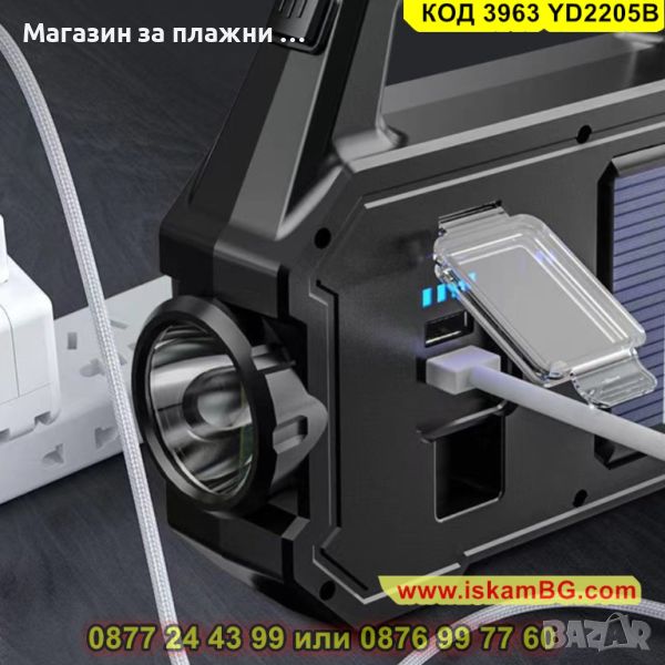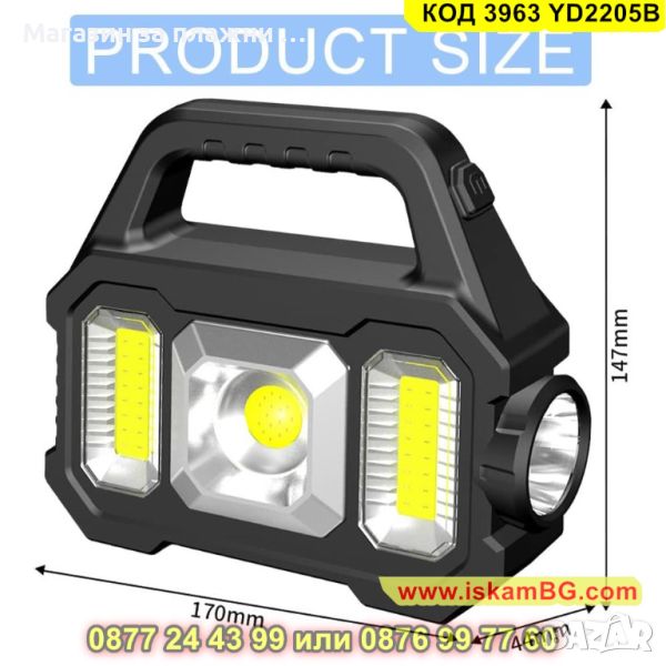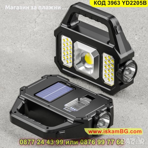 Прожектор със соларен панел и дръжка 500LM - Осветление за Всяка Обстановка - КОД 3963 YD2205B