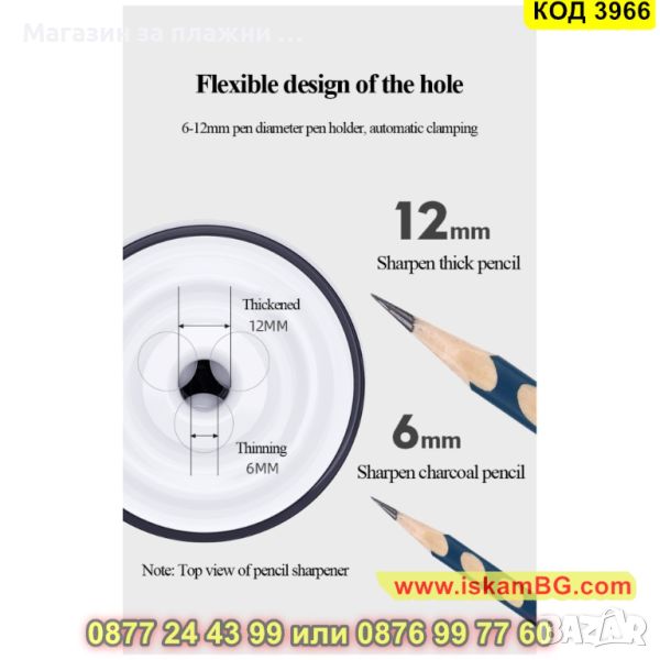 * Регулируем размер на острието: Автоматичната острилка предлага възможност за регулиране на размера на острието. Това ви позволява да изберете подходящият размер и форма на острието в зависимост от вашите предпочитания и нужди.