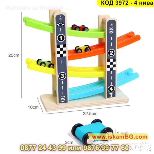 Детска дървена писта с колички на 4 нива - КОД 3972 - 4 нива