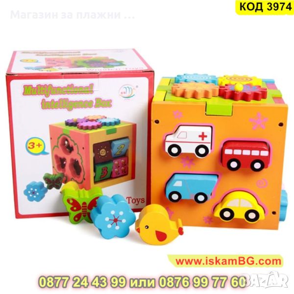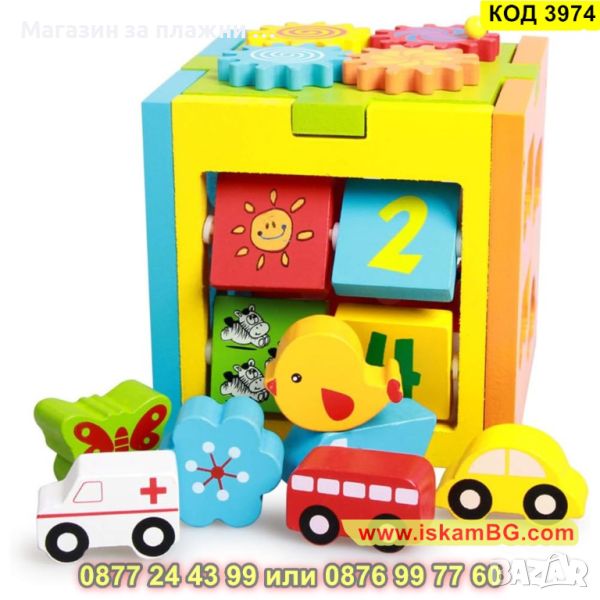 Интерактивен дървен куб с превозни средства и животни - КОД 3974