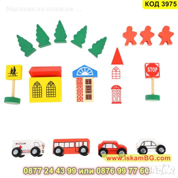Дървена писта с колички състояща се от 40 елемента - КОД 3975