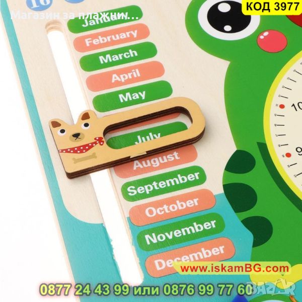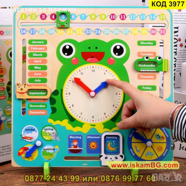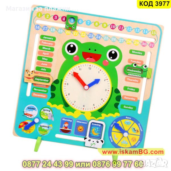 Дървена игра календар с часовник – Жабка - КОД 3977