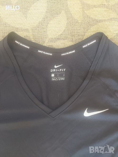 Тениска на Nike DRI-FIT. Отлично състояние. Целият гръб и отстрани е мрежест. Яката е V образна. Размер S. Дължината е 60см. широчина е 43см. Цена 25лв.