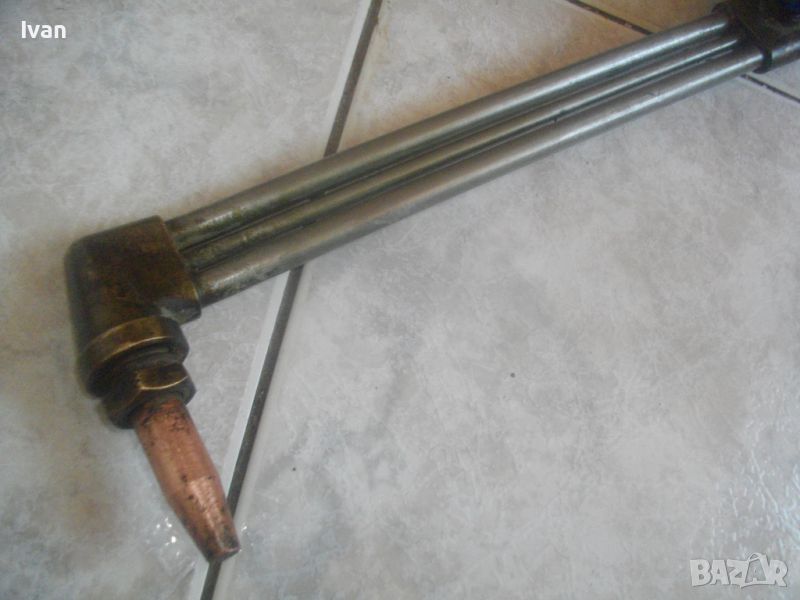 ОПИСАНИЕ на дълъг резак с маркучи - 299 лв.. За оксижен за газо-кислородно заваряване/рязане/спояване/запояване /ацетилен-кислород/. Марка и модел - BUTBRO BS EN ISO 5172. Почти нов, много малко ползван. В отлично техническо8работно състояние. Цялостна дължина 52 см с щуцерите. 2 въртока, стоманен масивен дълъг спусък. 3 тръби / в каталога на марката пише, че са със сребърен припой/. Алуминиева удобна олекотена дръжка. Бронзова предна част, бронз глава, поставена оригинална голяма медна контактна дюза за рязане - 7 дупки. Инструмента е с двата си оригинални маркуча - с дължина всеки по 110 см и поставени оригинални бързи връзки към тях. Цената на инструмента с маркучите е 299 лв.