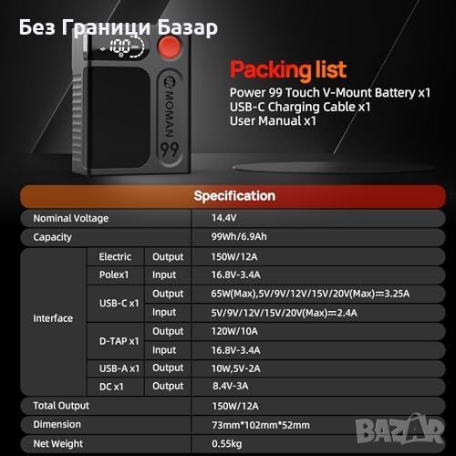 Нова Moman Power 99Wh V-Mount: Мултифункционална, Преносима Батерия