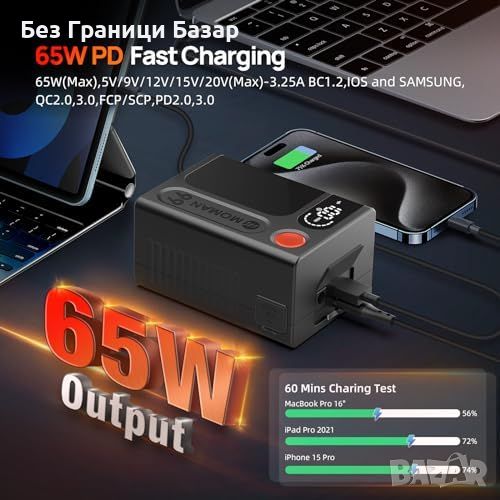 Бързо зареждане с 65W USB-C, поддържащо различни протоколи като PD/QC/FCP.