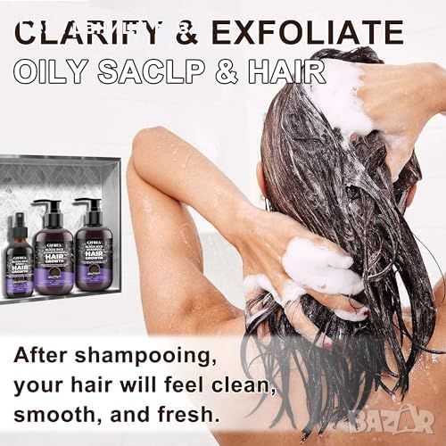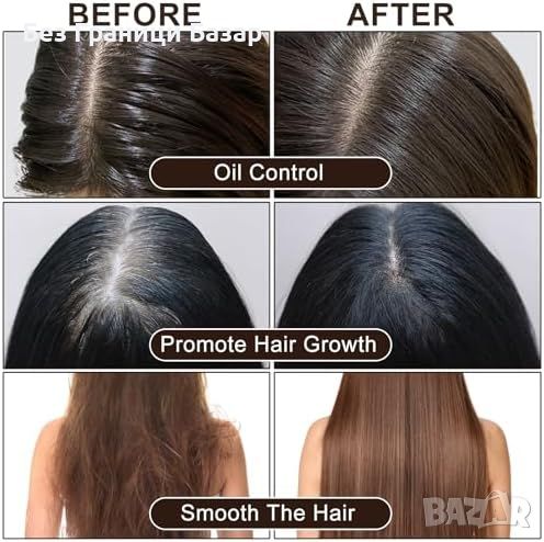Подхранващ шампоан: Нежен шампоан с оризова вода, биотин, касторово масло, арганово масло и кератин, стимулиращ растежа и подхранване на скалпа.