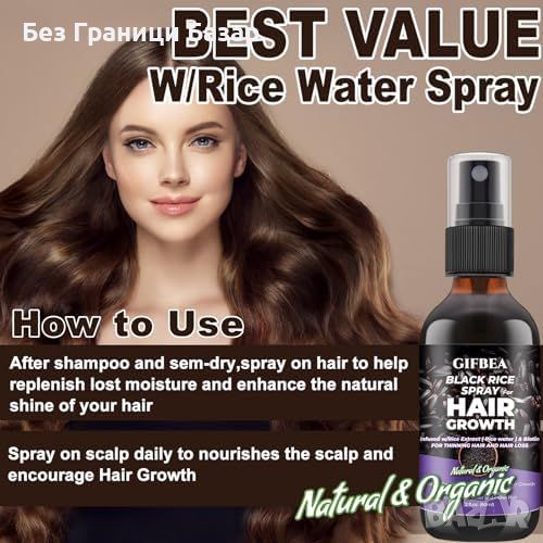 Комплект за възстановяване на косата: Шампоан и балсам с оризова вода от GIFBEA, обогатени с черен ориз, който съдържа фибри, желязо и витамини за здрава коса.