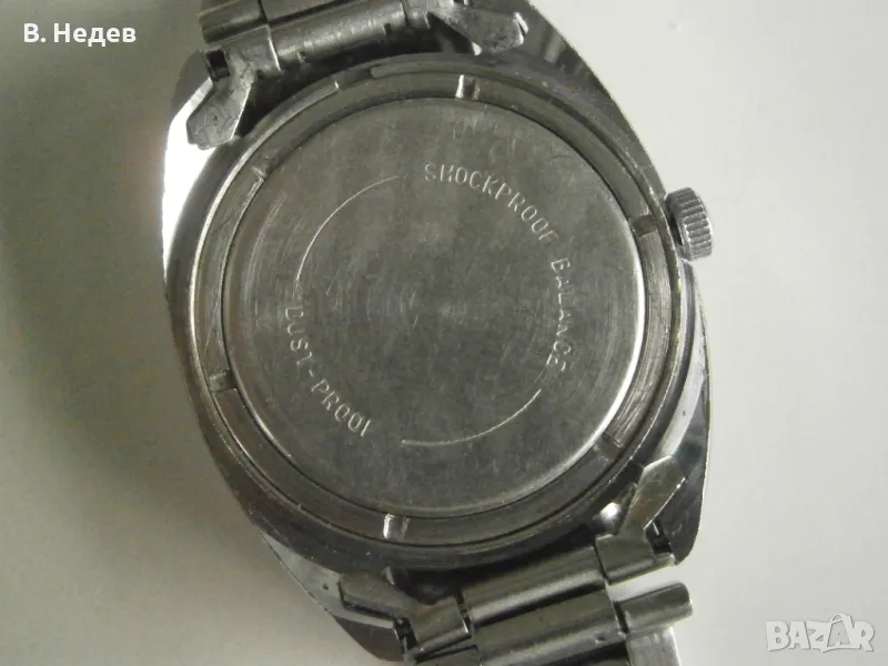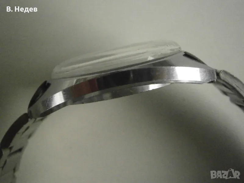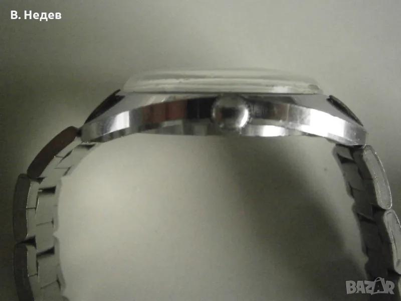 Минимални следи от носене. Циферблат, каса, машина, стрелки, индекси-цифри, надписи - моля, разгледайте подробно снимките! Капак на корпуса - на винт; часовникът е с мн. добра херметизация. Поддържа отлично време за механичен часовник - до +30-45sec/ 24 h. Профилактиран преди седмица!