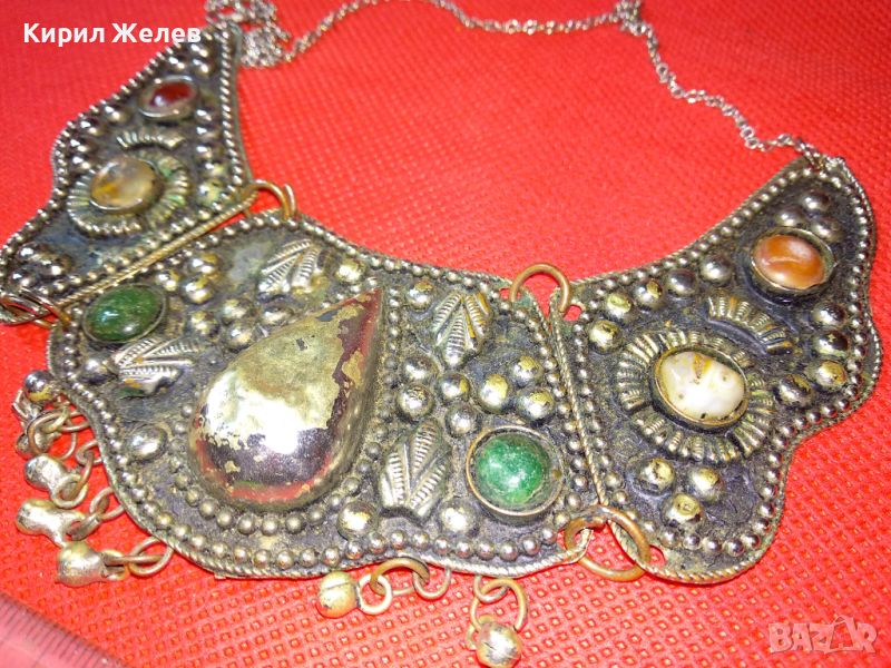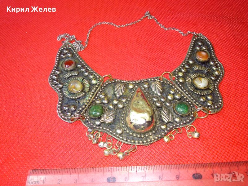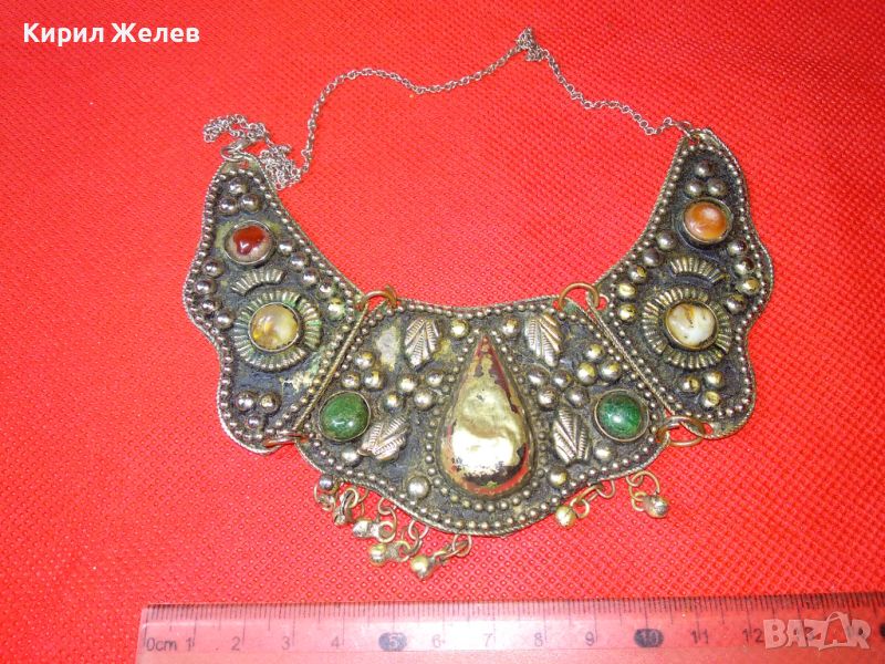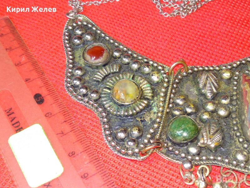 СТАРА РАЗКОШНА ПОСРЕБРЕНА РЕТРО ОРИЕНТАЛСКА ОГЪРЛИЦА с ПОЛУСКЪПОЦЕННИ КАМЪНИ НАКИТ За НОСИЯ 41890