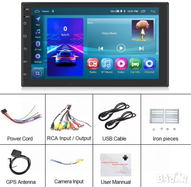 Андроид, WIFI, MirrorLink, Bluetooth, CAR PLAY, ANDROID AUTO, 2бр USB входа за флашка и др. Цената е за цял комплект.