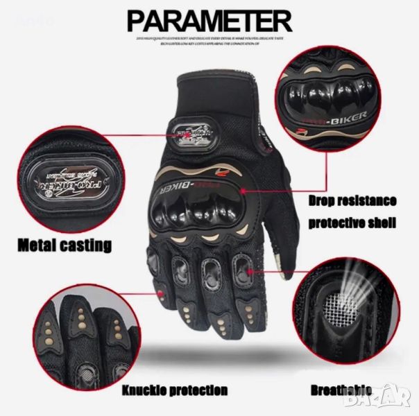 Подходящи за мотор, ATV, скутер, велосипед и др. Предпазете Вашите ръце от наранявания, вятър и лоши климатични условия. Изработени от приятна и здрава дишаща материя, подсилени с пластмасови протектори на най-необходимите места. Разполагат с отвори за вентилация на пръстите и специална грапавина, която гарантира перфектно захващане и сигурност без да има опасност от изплъзване. НЕ запотяват и можете да използвате телефона си, докато сте с ръкавиците.