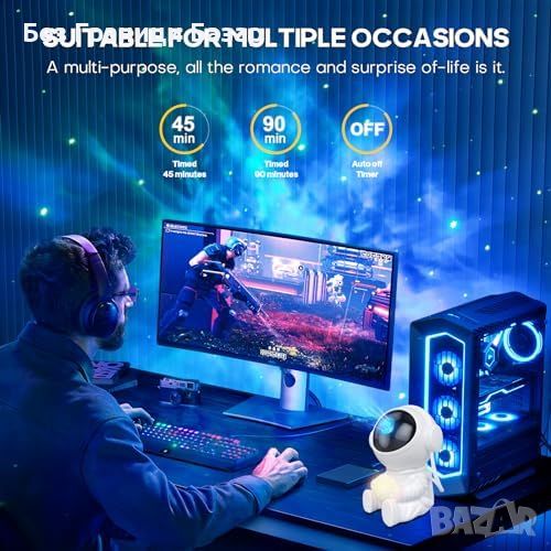 Астронавтен дизайн с гъвкави настройки: 21 режима на работа, регулируема яркост, различни цветови комбинации.