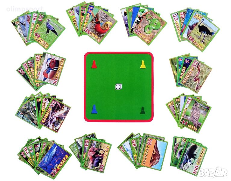 Играта съдържа: игрално поле, 100 карти със снимки и данни, 1 зар, 4 пионки, упътване за играта.