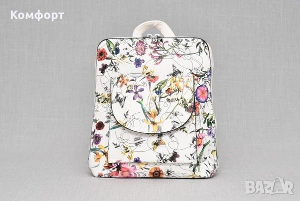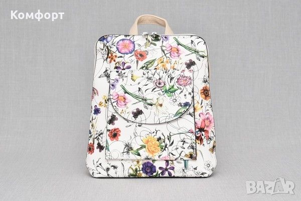 Дамска раница от еко кожа с флорални мотиви с кат.ном. В1027 удобна и практична.