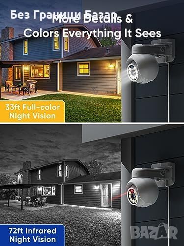 Цветно Нощно Видение: 8 LED светлини с до 33 фута цветно и до 72 фута инфрачервено нощно видение.