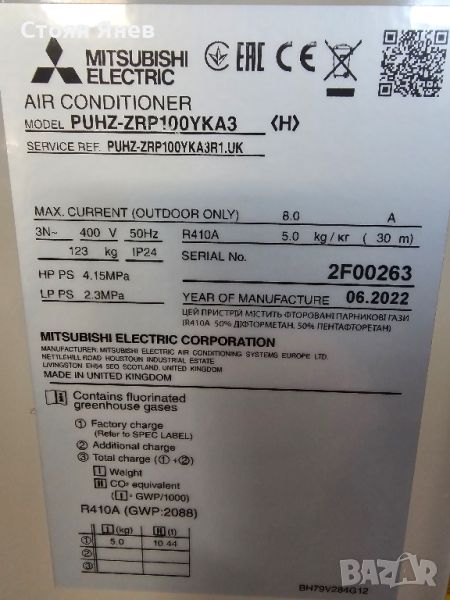 Външно тяло на климатик Mitsubishi PUHZ-ZRP100YKA3 -трифазен-нов-12 KW, снимка 1 - Други машини и части - 45200073 Външно тяло на климатик Mitsubishi PUHZ-ZRP100YKA3 -трифазен-нов-12 KW, снимка 2 - Други машини и части - 45200073 1/2