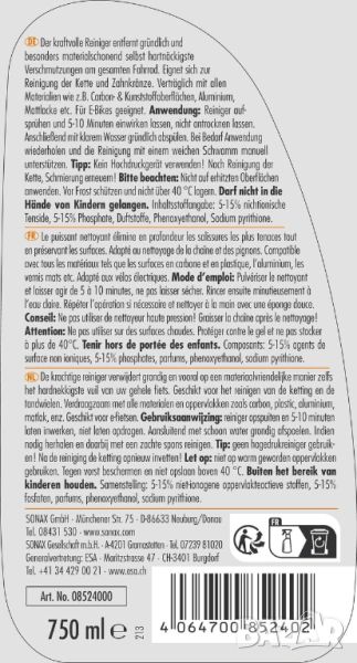 Sonax Cleaner, Препарат за Почистване на Велосипеди 750ml! 5 + 1 ПОДАРЪК!