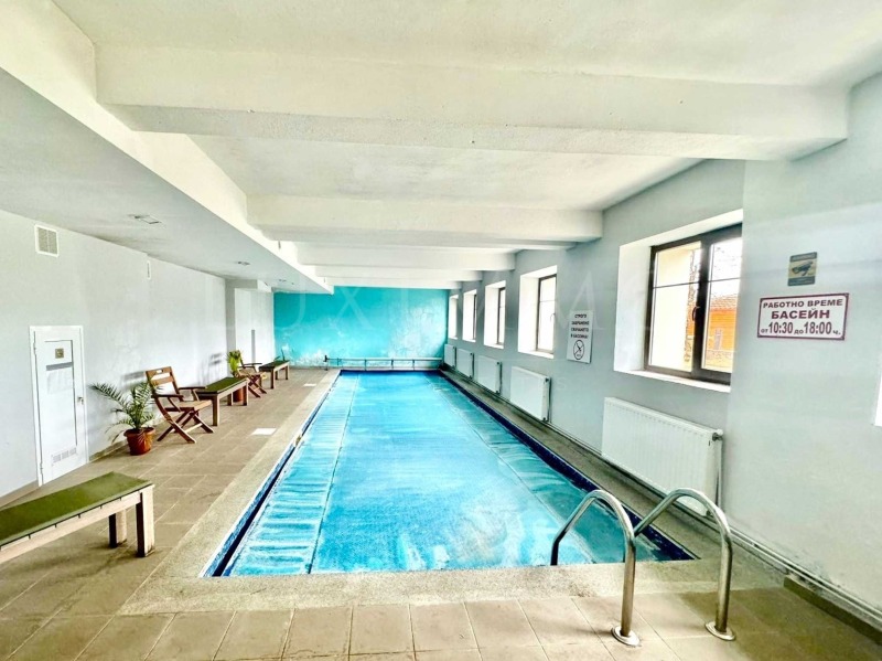 Имотът е с площ 2826 кв.м собствен двор, вътрешен и външен басейн, джакузи, масажна стая, сауна.