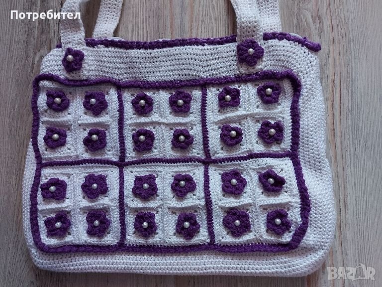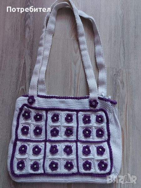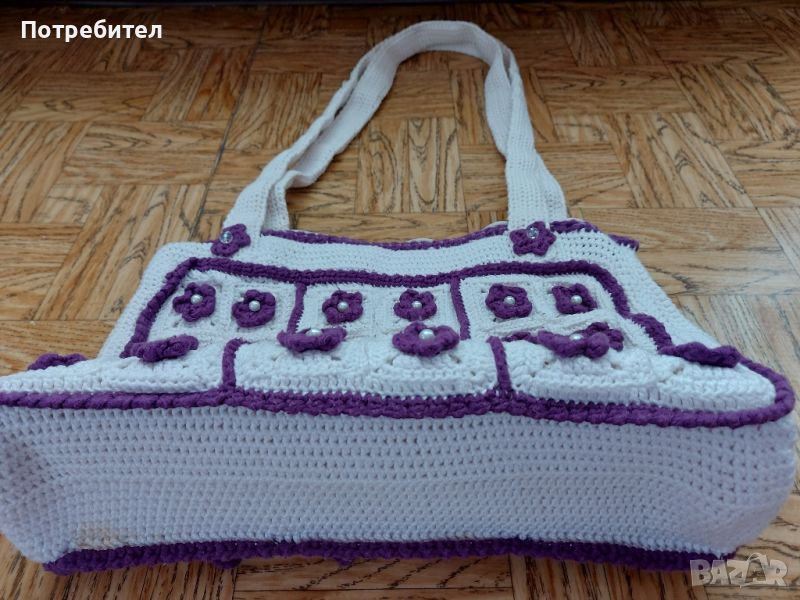 Дамска, ръчно изработена чанта с дълга дръжка с широчина-40 см и височина-30 см.