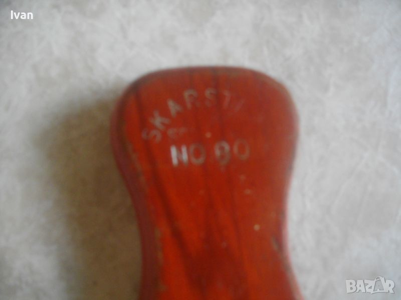 Скрепера е в почти нов, в отлично работно и визуално състояние. Отлично състояние на стържещият нож, без никакви наранявания по острието. Острие - сменяемо. Ширина нож/ширина работна на стържене - 80 мм. Дължина на скрепера - 180 мм, ширина - 80 мм, удобна дръжка за захват на ръката при работа. Дръжка - буково дърво, боядисано в оригиналната си червена боя.
