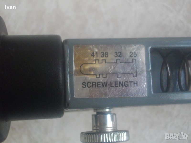 ОПИСАНИЕ на нова немска приставка за ел.винтоверт за серийно завинтване на винтове от лента - 89,00 лв. Съвсем нова, неизползвана. Немска . Приставката се поставя на ел.винтоверт и посредством нея се завинтват серийно автоматично винтове до размер дължина 41 мм ралични размери от лента, която се поставя на приставката. Приставката е за всички видове ленти винтове размер на винт 25 мм, 32 мм, 38 мм, 41 мм. Цялостна дължина на приставката - 255 мм. Приставката е за машина ел.винтоверт за гипсокартон. Захвата на приставаката е поставяне към ел.винтоверта, без да се снема патронника-глава на машината и се ползва дълъг бит накрайник /с дължина 140-180 мм/ за завинтване от ел.винтоверта.