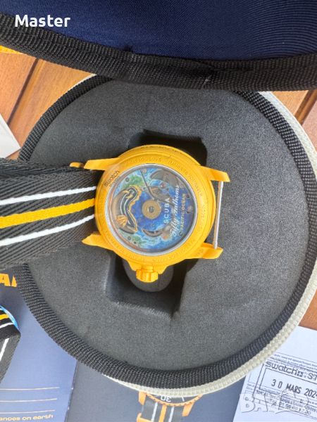 Този часовник Blancpain X Swatch почита Fifty Fathoms на Blancpain, първият истински водолазен часовник. Неговият син корпус и коронката са изработени от биокерамичен материал.