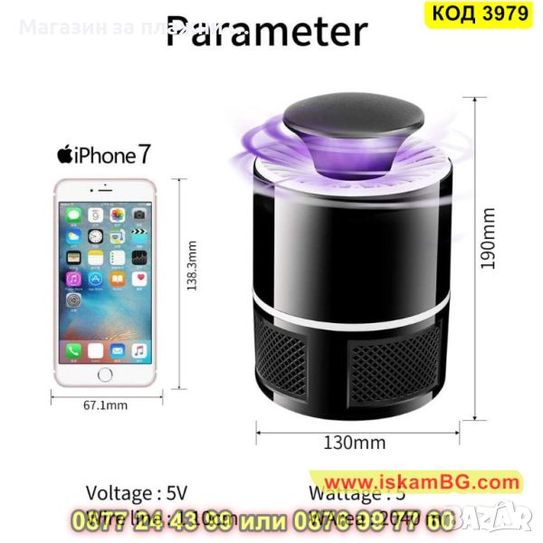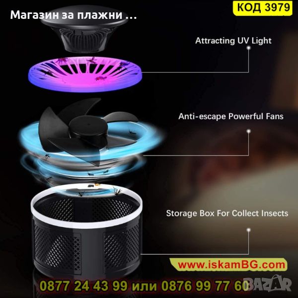 UV лампа-уловител за комари с перка - 1 брой