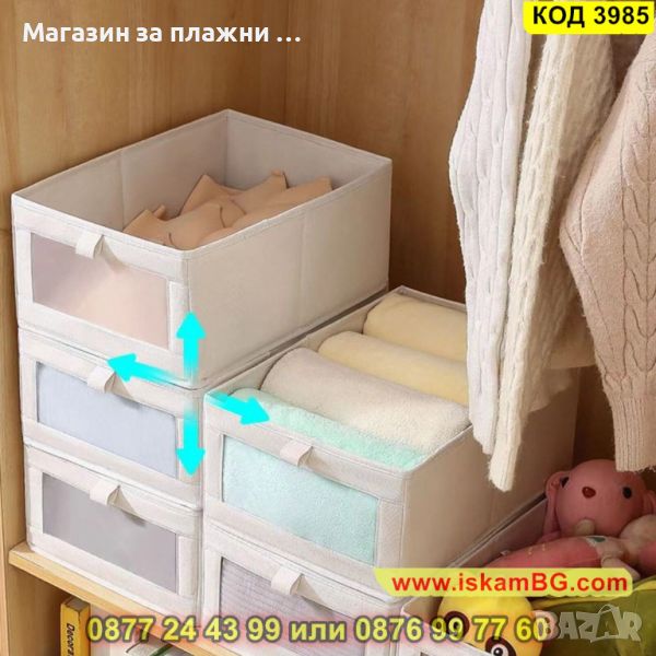 Сгъваема текстилна кутия за съхранение за шкаф и гардероб - КОД 3985